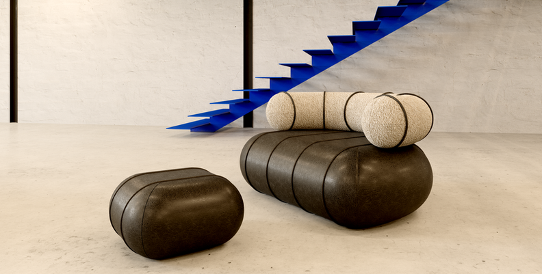 Upholstered in fabric or/and leatherette, made by order. Type of fabric can be changed upon request.